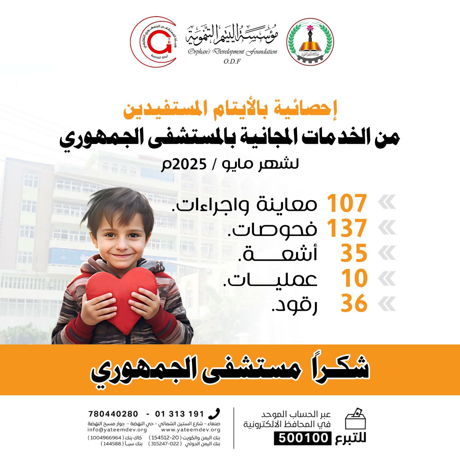 - "سهمك اليوم هو أمل الغد. تبرعك يمنح اليتيم تعليماً، رعاية صحية، وحياة أفضل."